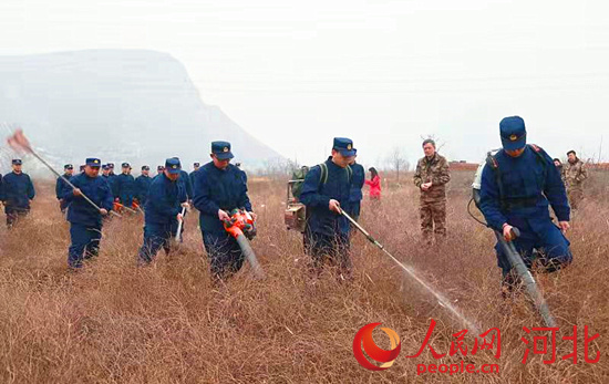 范爱保在武安市森林草原消防大队二中队检查工作并培训森林防灭火工作人员。刘学维 摄