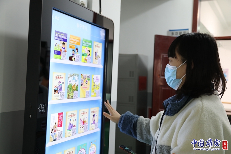 容城县图书馆电子借阅机。容城县委宣传部供图