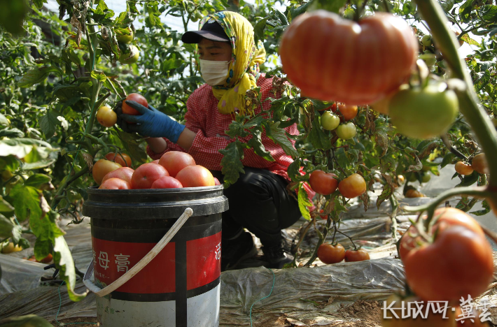 忙着采摘西红柿的村民赵淑玲快人快语:“我从去年开始,在大棚里薅草、点花、打叉,今年采摘,每天挣120元,不离家不离土,活也不累,挺好的。出去打工一个月也不一定能挣4000块钱,还把家给扔了。像我一样常年在这务工的本地村民有40多人,还有‘夫妻工’,我那口子就在这里打工呢。”