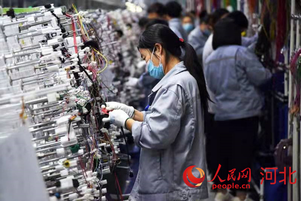 廊坊莱尼线束系统有限公司生产车间,工作人员在工作中。王洋洋 摄