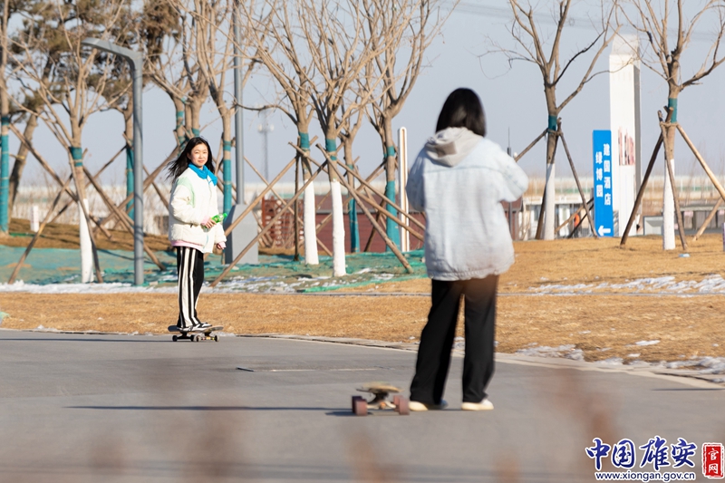 雄安郊野公园里,孩子们一起玩滑板。中国雄安官网毛鹤然 摄