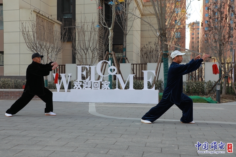 容东片区安置房E组团回迁居民正在晨练。中铁建工集团北方工程有限公司供图