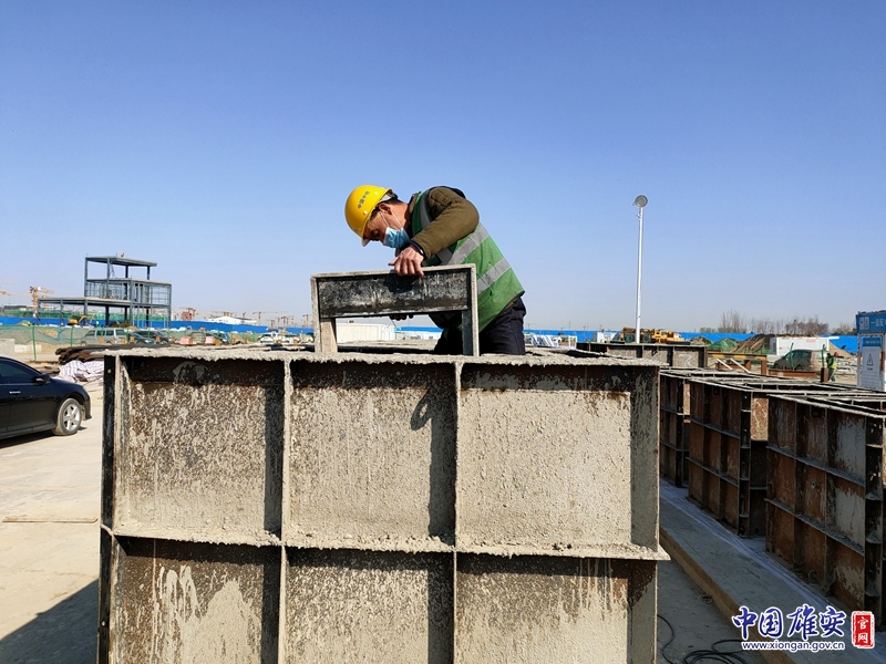 装配式管廊建设现场,雄安建设者进行制模作业。中铁二局供图