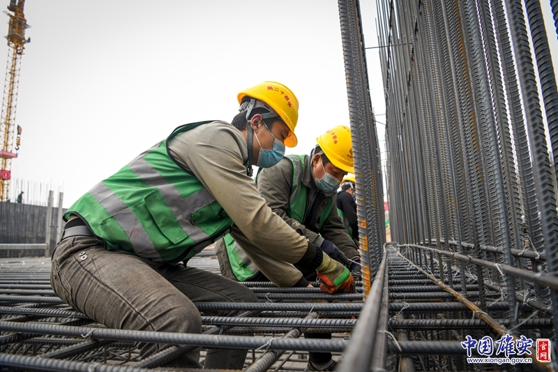 雄安建设者进行施工作业。中铁十二局任双欢 摄