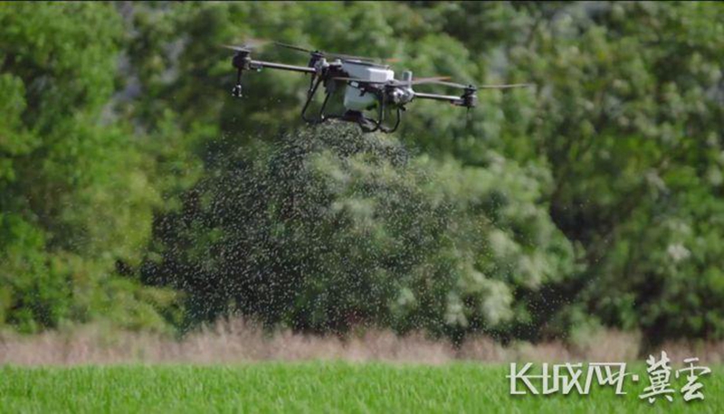 石家庄市藁城区无人机进行一喷多效作业。长城网·冀云客户端记者李佳琦 摄