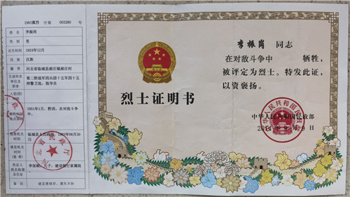 希望的破灭或许就在一瞬。1951年初,李振岗在贵州黔西威宁剿匪战斗中负伤,因伤势较重,在往毕节军区医院转移时,路途护理不好,1月19日于中途赫章牺牲,将年轻的生命永远留在了解放战场上。那一年,他未曾谋面的儿子李保顺,只有4岁。