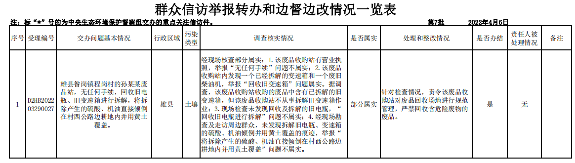 附文件:第七批群众信访举报案件边督边改情况一览表
