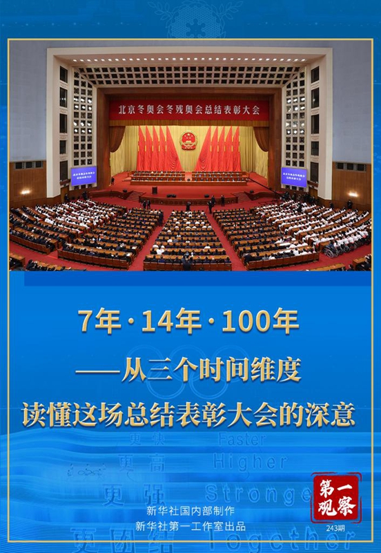 回眸过往,北京冬奥会、冬残奥会历经7年筹办举办、14年的跨越守望、100年的历史回响,一个个时间维度,标注出这场总结表彰大会背后的深意。