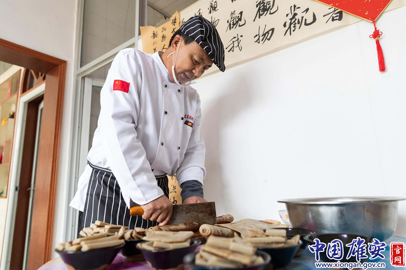 面菜片放板上,四边内折叠成方块,或卷成卷,摁压成一体,趁热把提前熬制好的糖色刷在表面着色,锅中淋香油,锅热后将着色一面面朝锅底,摁住轮转,让油把色包住。然后将面卷放置一夜,褪去水汽,待面卷晾凉,就可以切好装碗上锅蒸了。中国雄安官网高盟 摄