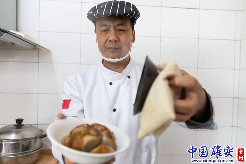 面卷上锅蒸的同时,李根君也没闲着,准备好葱沫、姜沫、盐、胡椒粉、醋放入盆中,用锅里熬了两个小时的高汤兑入,待面菜蒸透,碗中加入香菜,淋上明油,一碗酸中带辣、鲜香爽口的面菜即可食用。中国雄安官网高盟 摄