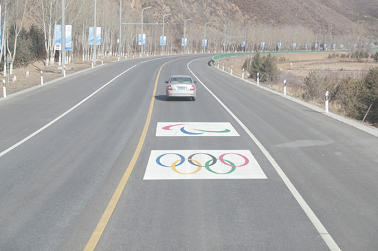 冬奥交通专用道高标准施划。谭磊 摄