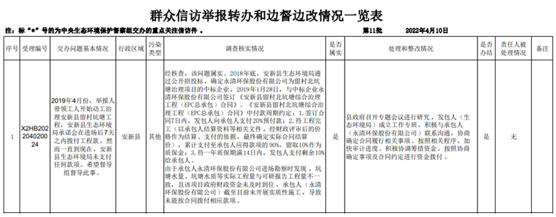 第十一批群众信访举报案件边督边改情况一览表