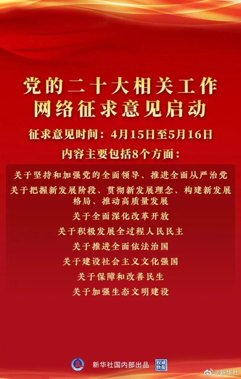为贯彻落实习近平总书记重要指示精神,自4月15日起,党的二十大相关工作网络征求意见正式启动。