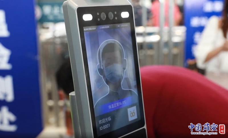眼神科技面部识别防疫一体机在雄安新区商超、高铁站、宾馆、社区等广泛应用。眼神科技公司供图