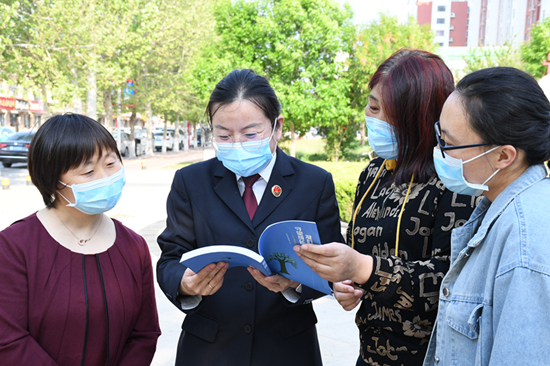 4月19日,在威县好人公园,检察官向群众宣传家庭教育促进法。刘永格 摄