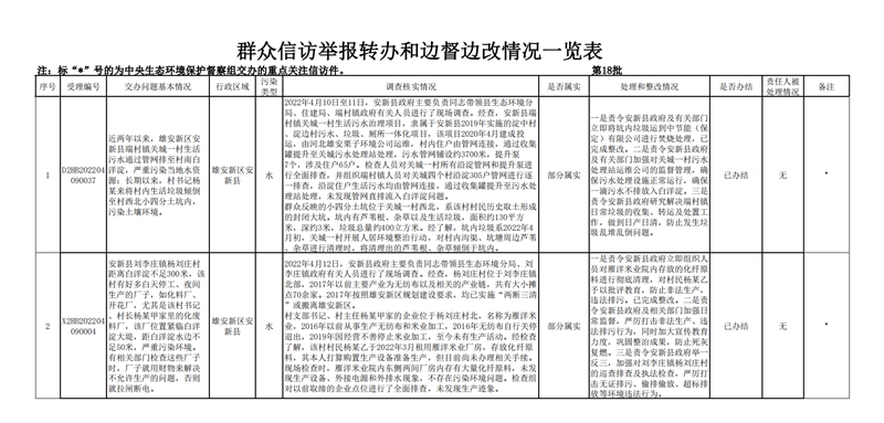 附件:第十八批群众信访举报转办和边督边改情况一览表