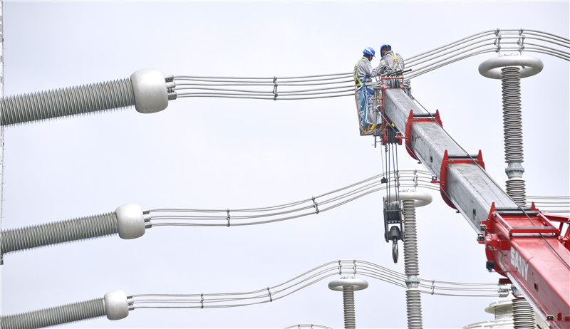 国网北京市电力公司延庆换流站的员工检查张北柔性直流电网输变电设备。(资料片)新华社记者李欣 摄