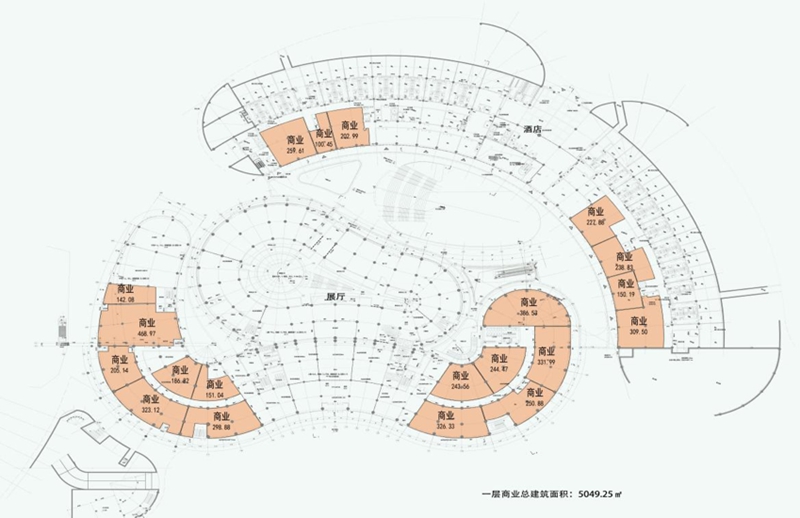 雄安主场馆此次招商分为商铺和展厅两部分(如图)。