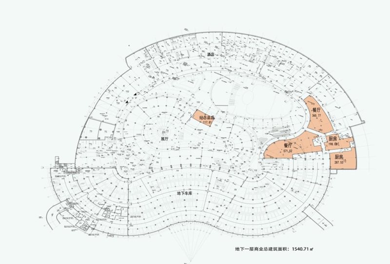 展厅部分面积约8800㎡,分地上地下两部分连接构成,可做各类展示展览、商业综合体用途。