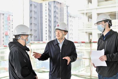中国雄安集团有限公司安全总监盛智平(中)在项目现场检查安全生产工作。河北日报记者赵海江 摄