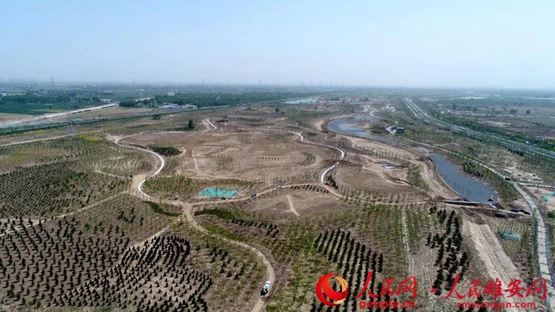 航拍起步区北部绿化带(三至五组团)项目三标段建设现场。韩冰 摄