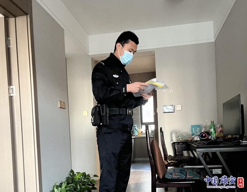 胡泉走进容东片区回迁群众家中工作。容城县公安局供图