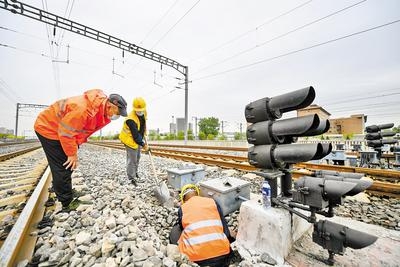 所谓的“手术”,便是“拨接”施工,即将原有铁路部分线路改移到临时过渡线或新线位上。而位于铁路车站两端的道岔区密布着道岔、信号机和电气装备,施工稍有不慎,就有可能影响到铁路大动脉安全。因此,在这里施工就像给车站“心脏”做手术,既要动作快又要心细。