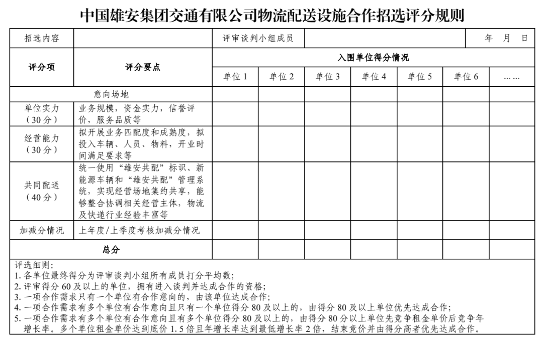 附件:中国雄安集团交通有限公司物流配送设施合作招选评分规则