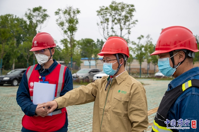 薛丽峰(中)在项目现场。中国雄安官网高盟 摄