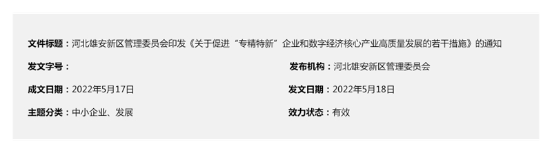 为有效承接北京非首都功能疏解,加快实现“五新”目标,加速科技创新资源集聚,积极构建雄安新区现代产业体系,做强做优数字经济,促进符合产业定位的企业高质量发展,根据《财政部 工业和信息化部关于支持“专精特新”中小企业高质量发展的通知》(财建〔2021〕2号)以及《科技部办公厅关于营造更好环境支持科技型中小企业研发的通知》(国科办区〔2022〕2号)等文件规定,提出如下措施。