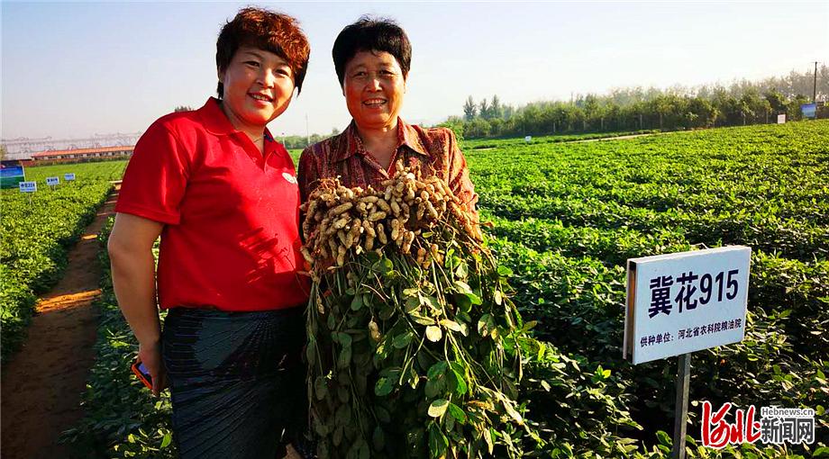 李玉荣(右)手捧即将丰收的高油酸花生“冀花915”喜悦不已(资料片)。河北省农林科学院供图