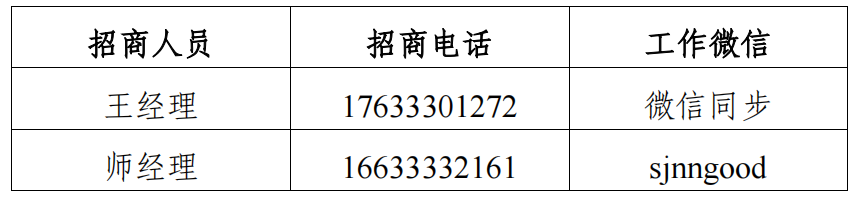 招商咨询业务较为繁重,招商现场多有电话信号不稳等情况,敬请谅解,并建议以微信方式向招商工作人员留言,工作人员将会尽快回复您的招商咨询。有意向品牌及群众可选择错开周末高峰时间,尽量选择工作时间与招商工作人员对接联系。