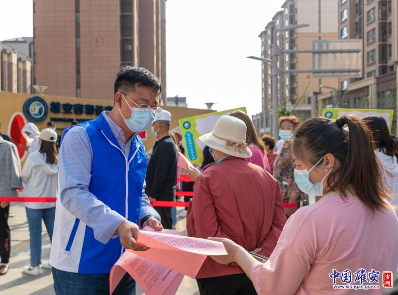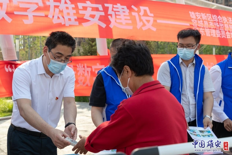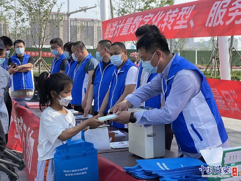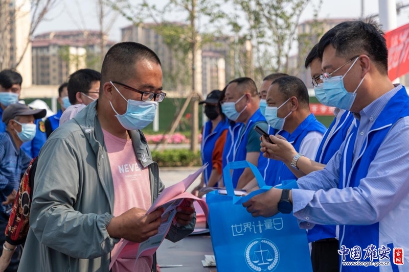 “世界计量日”宣传活动现场,工作人员向新区群众发放计量知识宣传单。中国雄安官网高盟 摄