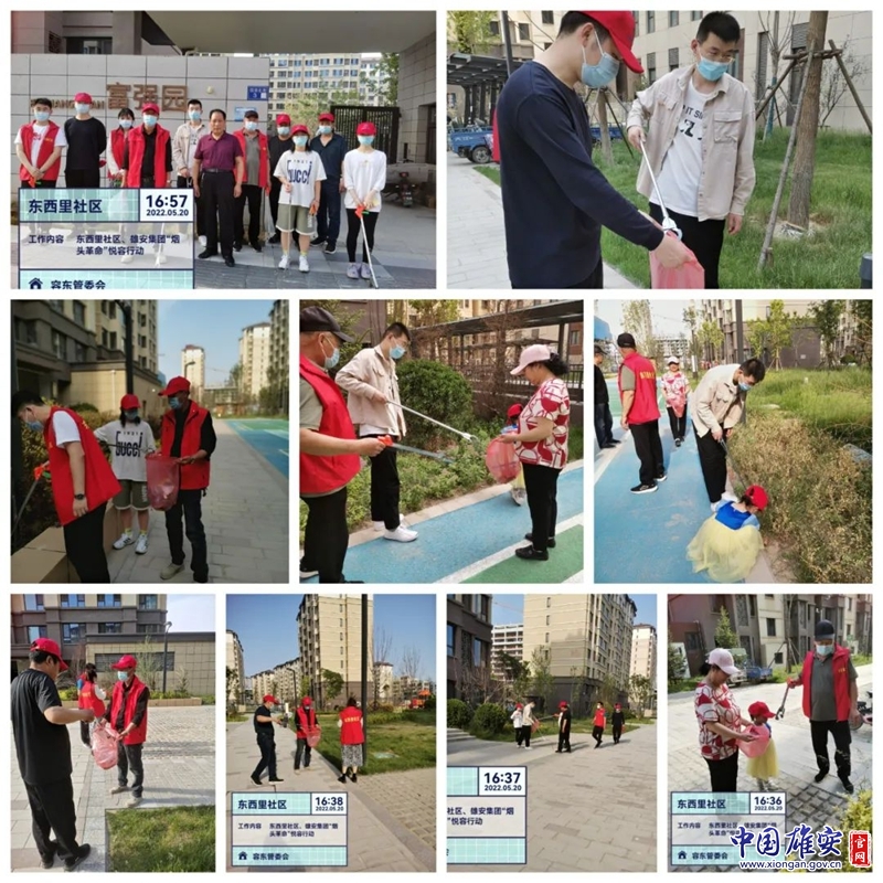 东西里社区居民和小朋友参与到“烟头革命”志愿活动中。容东管委会供图