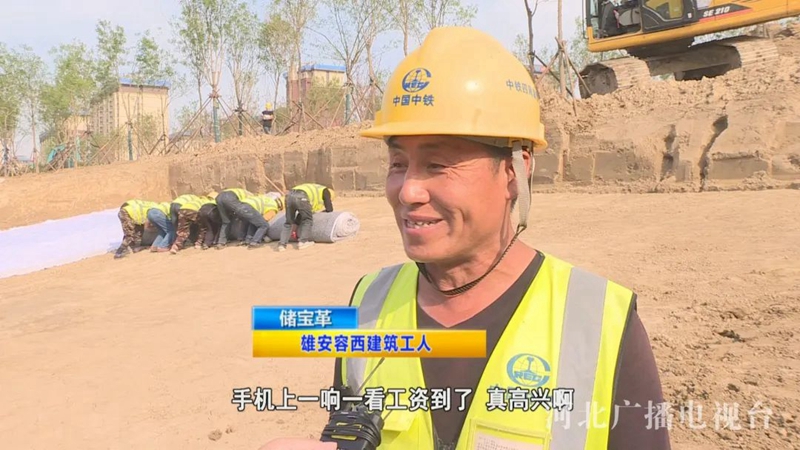 雄安容西建筑工人储宝革:手机一响看到工资到账了,大伙都在互相问工资到了吗,因为在其他地方一般都是年底结账或者是按季度结账,现在我们的工作干起来太有劲头了。