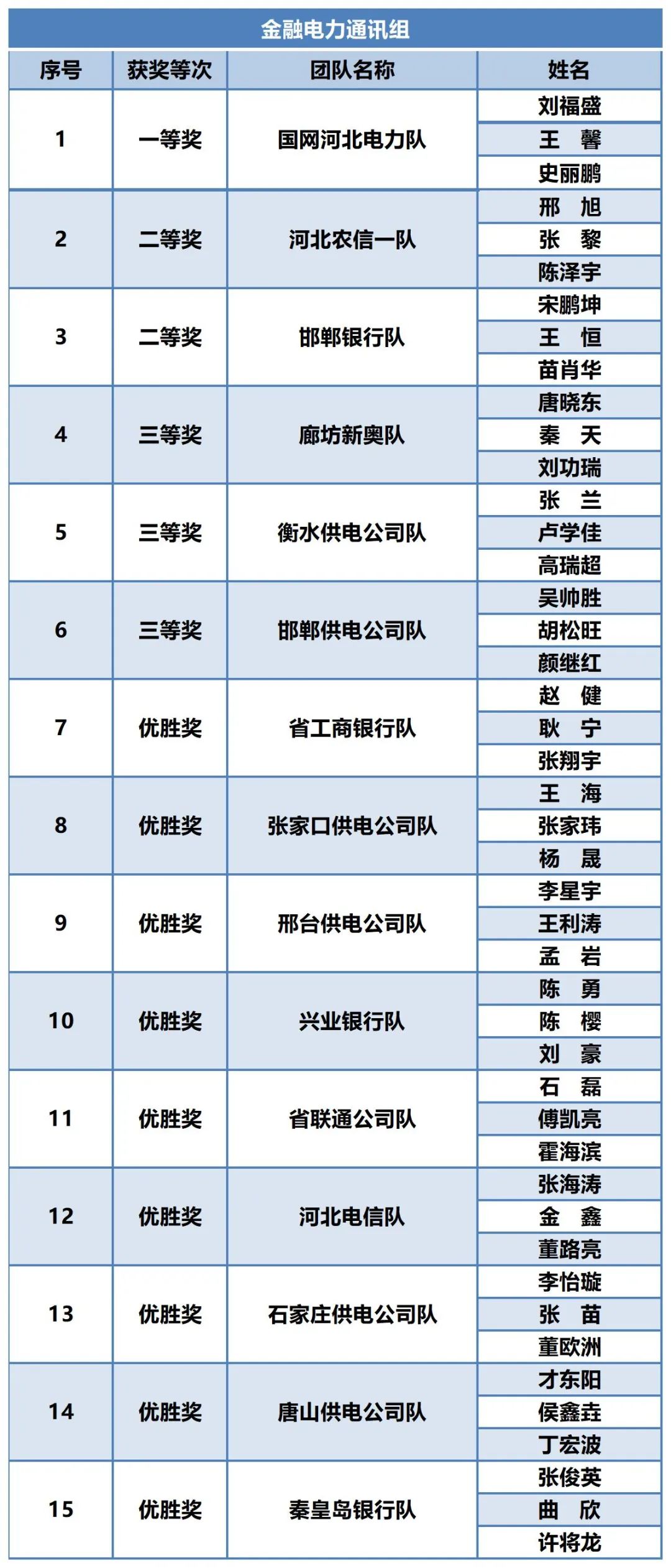 “冀信”网络安全技能竞赛获奖队伍名单