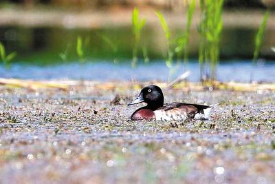 5月22日至25日,省林草局组织野生动物专家和有关人员在对白洋淀湿地鸟类进行观测考察时,发现10余只国家一级保护动物青头潜鸭成体。这是当地继2021年发现青头潜鸭越冬后,首次在繁殖季发现该物种成体。