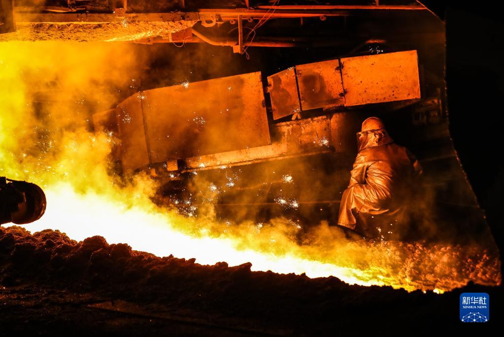 2021年7月1日,工人在鞍钢股份炼铁总厂新四号高炉进行生产作业。新华社记者潘昱龙 摄