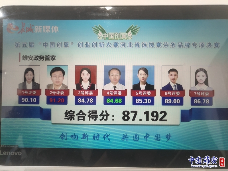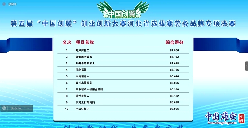 第五届“中国创翼”创业创新大赛河北选拔赛劳务品牌专项赛省级决赛排名情况。雄安新区公共服务局供图