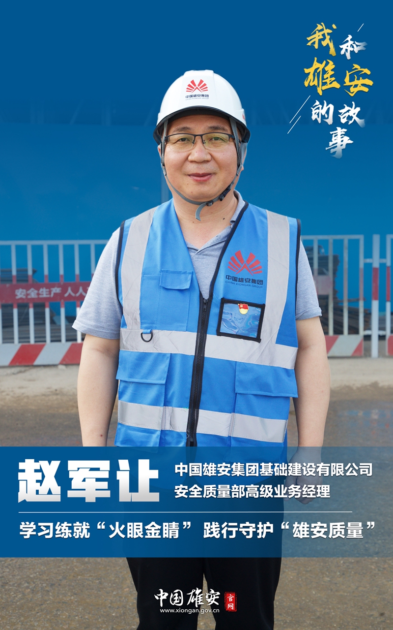 赵军让是中国雄安集团基础建设有限公司安全质量部高级业务经理。47岁的他已在建筑行业辛勤耕耘25年,曾参与建设长沙磁浮、山西大学文科楼等工程,荣获2015年湖南省劳动模范。