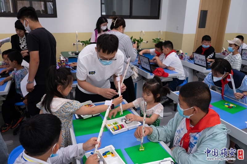小朋友们体验制作乐高机器人。雄安新区公共服务局供图