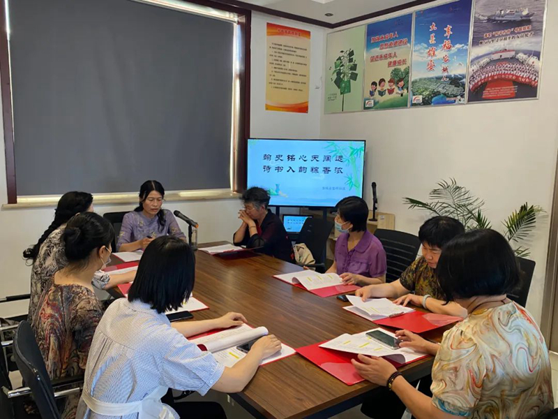 读书会环节,大家齐聚容祥书屋“慧源斋”,领读人王红艳老师介绍了传统节日“端午节”的由来。随后,活动参与者先后朗诵了《端午即事》《竞渡歌》《小重山·端午》等诗词。铿锵有力的诗朗诵、娓娓动听的故事,优美的配乐,进一步激发了居民的爱国主义情怀,加深了对优秀传统文化的认识和理解,不时赢得阵阵掌声。