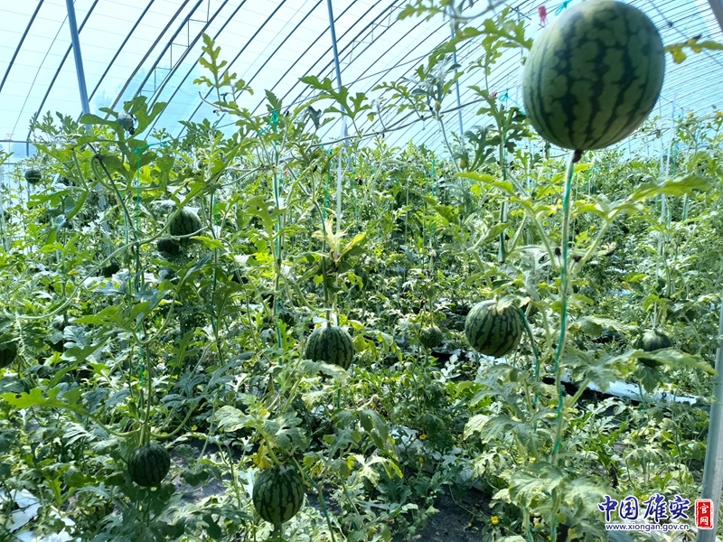 现代化温室大棚里挂着正在生长的西瓜。中国雄安官网李雪娇 摄