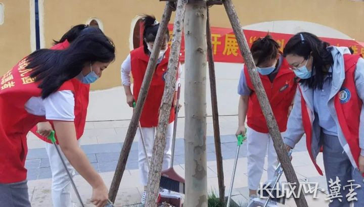 发挥榜样力量,做好示范引领。雄安容和教育总校佳泰幼儿园每位党团教师自发成立“烟头革命”小组,在校园周边利用课间时间捡拾烟头,为学生们树立榜样。