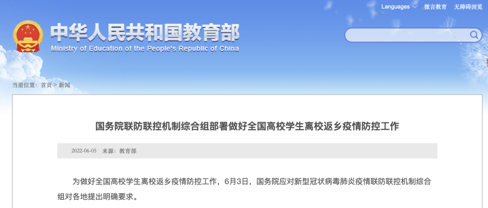为做好全国高校学生离校返乡疫情防控工作,国务院应对新型冠状病毒肺炎疫情联防联控机制综合组日前对各地提出明确要求。