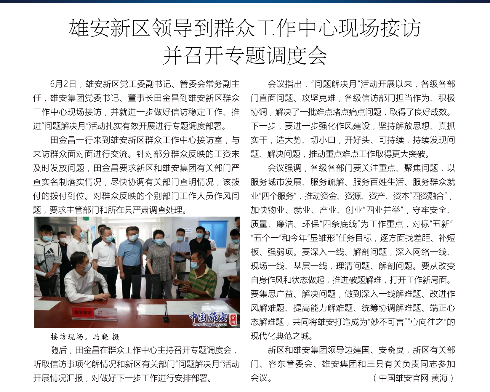 雄安新区领导到群众工作中心现场接访并召开专题调度会