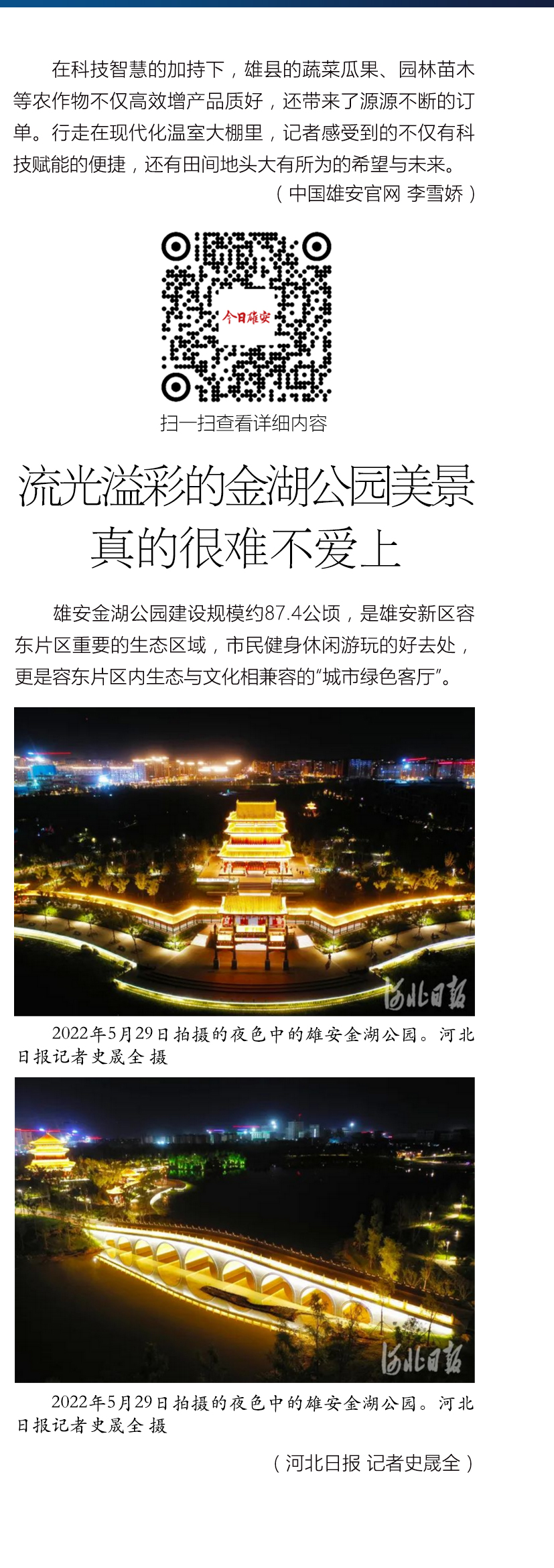 图说雄安|瞰!金湖公园流光溢彩