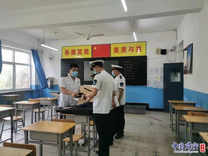 容城县卫健局工作人员为高考做噪音检测等保障工作。中央民族大学附属中学雄安校区(容城中学)供图