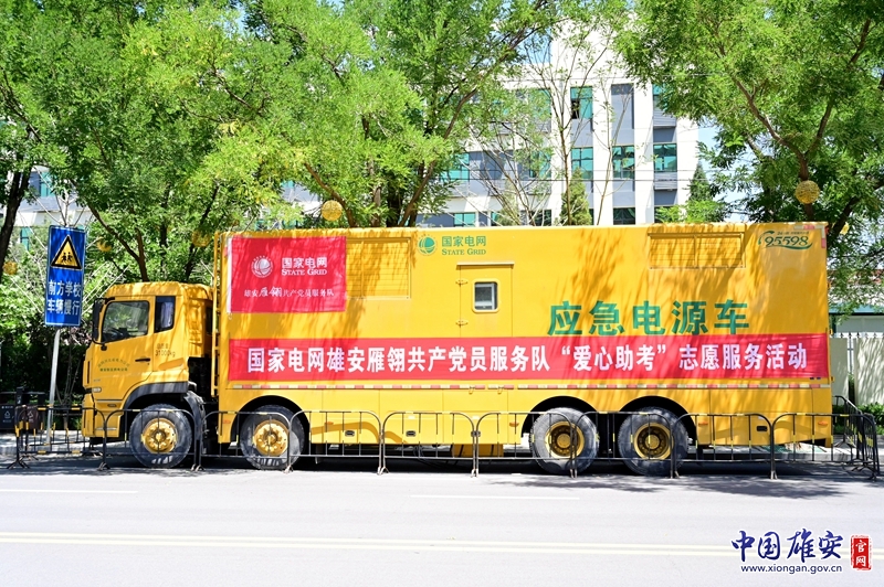 国家电网雄安新区供电公司高考电力保障车辆。石家庄二中雄安校区河北安新中学供图