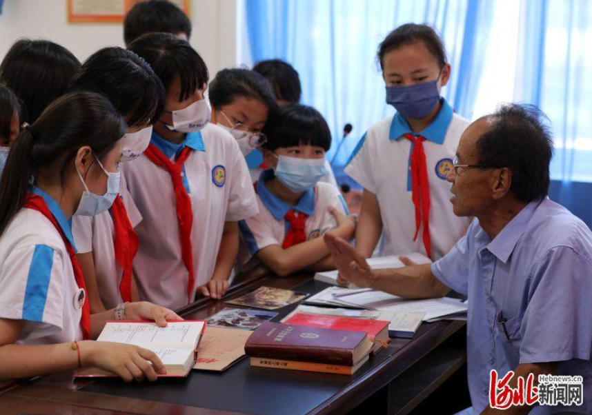 2022年6月6日,河北省邢台市广宗县冯家寨镇南张葛村的乡贤在冯家寨中学宣讲红色故事。